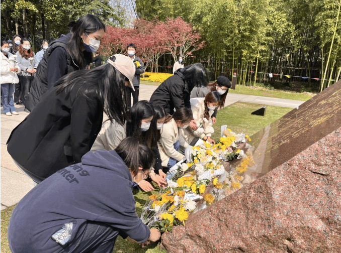 龙华烈士陵园纪念碑广场苍松翠柏,庄严肃穆。主持人为大家介绍龙华烈士陵园信息。全体学生聆听烈士光辉事迹,感受在战争年代下先辈们“捐躯赴国难,视死忽如归”的家国情怀,并深深默哀、鞠躬,向不畏牺牲、勇往直前的革命烈士,致以内心最深处的敬意和哀思。