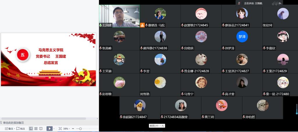 会议伊始,张高峰宣读《关于同意中共买球官方网站委员会所属学生党支部调整结果的批复》,撤销原学生第三党支部,成立“守常党支部”,由高才雯同志担任党支部书记。随后,高才雯就“守常党支部”的未来发展建设作了发言。她说到,要把“守常党支部”打造为马院的特色品牌党支部,并促进支部成员在学习好自身专业的同时,进一步学习“守常精神”,继承和弘扬先辈之遗志。支部成员孙梦泽建议“守常党支部”建设能与上海红色资源、买球官方网站红色基因以及守常先生的事迹进行创意连接,打造具有鲜明特色的党支部。 “守常党支部”将采用“理论学习+红色宣讲+创新实践”的培养方式,通过学、行、宣、思等培养板块,使支部构建成为一支理论学习多样化的学习型党支部 、红色宣讲常态化的传承型党支部、创新意识实践化的创新型党支部。“守常党支部”将在不断学习中继承和弘扬李大钊先生留下的精神财富,发挥守常先生守护“艰苦朴素的优良家风、服务群众的为民情怀、清正廉洁的政治本色”的崇高担当,引领当代青年党员赓续红色基因,不忘初心、勇担使命,弘扬伟大建党精神,激励马院同学积极宣传和研究马克思主义,自觉把伟大建党精神转化为行动的力量,争做先进青年,勠力同心为实现中华民族伟大复兴的中国梦而奋斗。