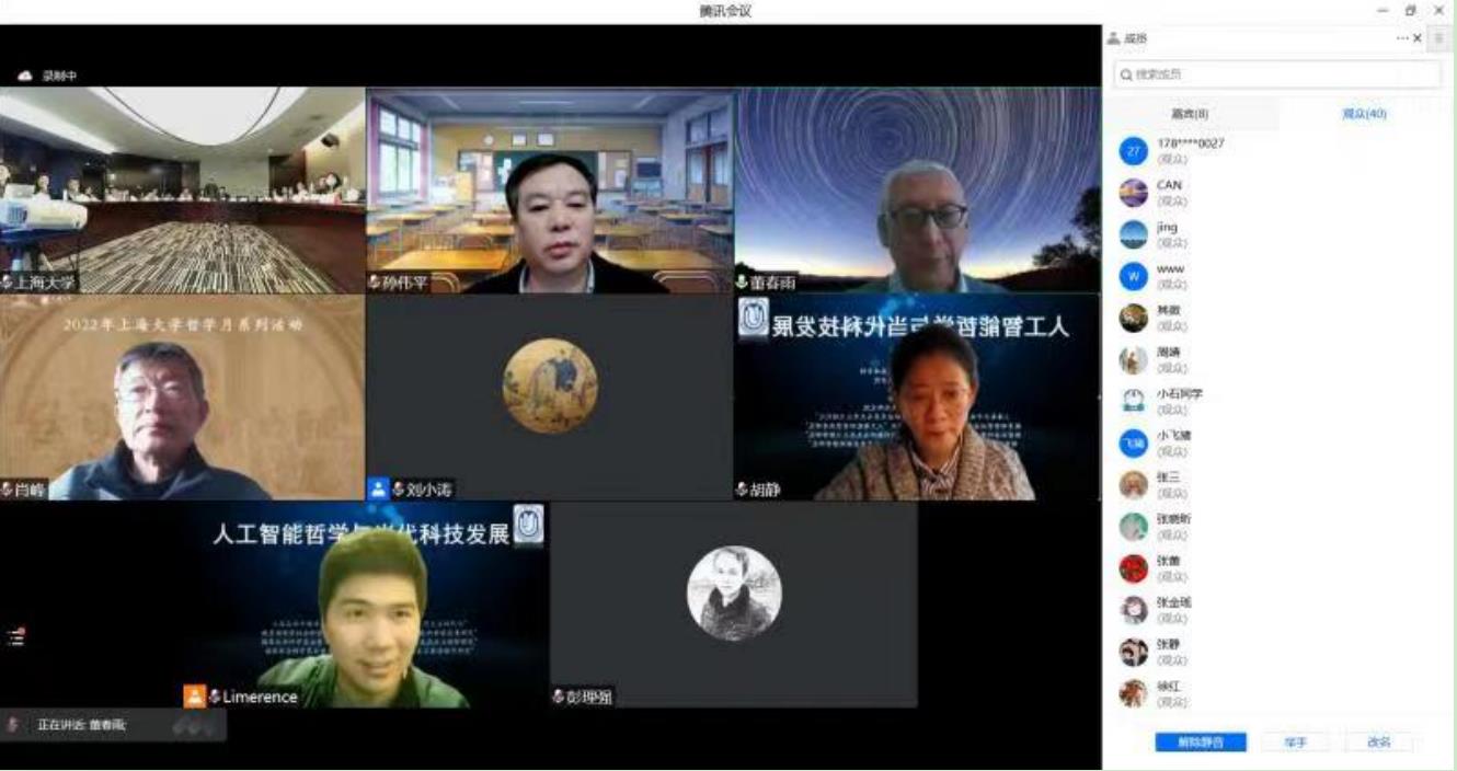 2022年11月5日至6日,“人工智能哲学与当代科技发展”会议在衡山北郊宾馆宝山厅举行。此次会议由买球官方网站马克思主义理论高峰学科、买球官方网站、买球官方网站哲学系、上海市逻辑学会、买球官方网站智能哲学与文化研究院、教育部哲学社会科学研究重大课题攻关项目“人工智能的哲学思考研究”、国家社会科学基金重大项目“人工智能前沿问题的马克思主义哲学研究”、国家社会科学基金重大项目“负责任的人工智能及其实践的哲学研究”、上海高水平地方高校创新团队“智能社会及其马克思主义时代化”联合主办。为积极配合防疫政策,会议采用线上与线下结合的方式举行。