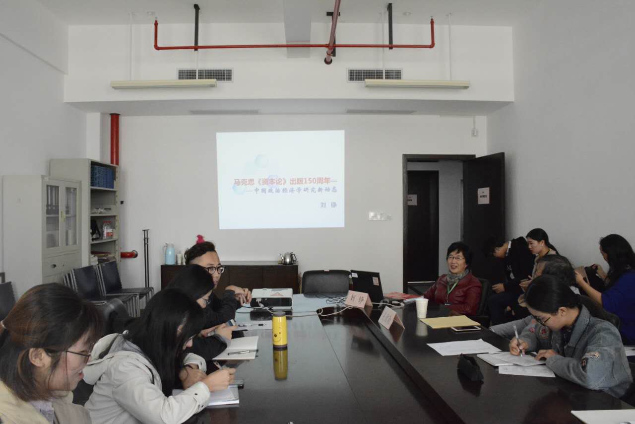 2017年11月3日中午12:00,泮池言学暨社科论坛第200讲在买球官方网站本部东区社科楼304顺利举行。本次论坛邀请到刘铮教授为同学们带来"《资本论》发表150周年——中国政治经济学研究新动态"的主题讲座。艾慧老师出席了此次讲座,各年级硕士研究生参加了此次讲座。讲座由吴德勤老师主持。