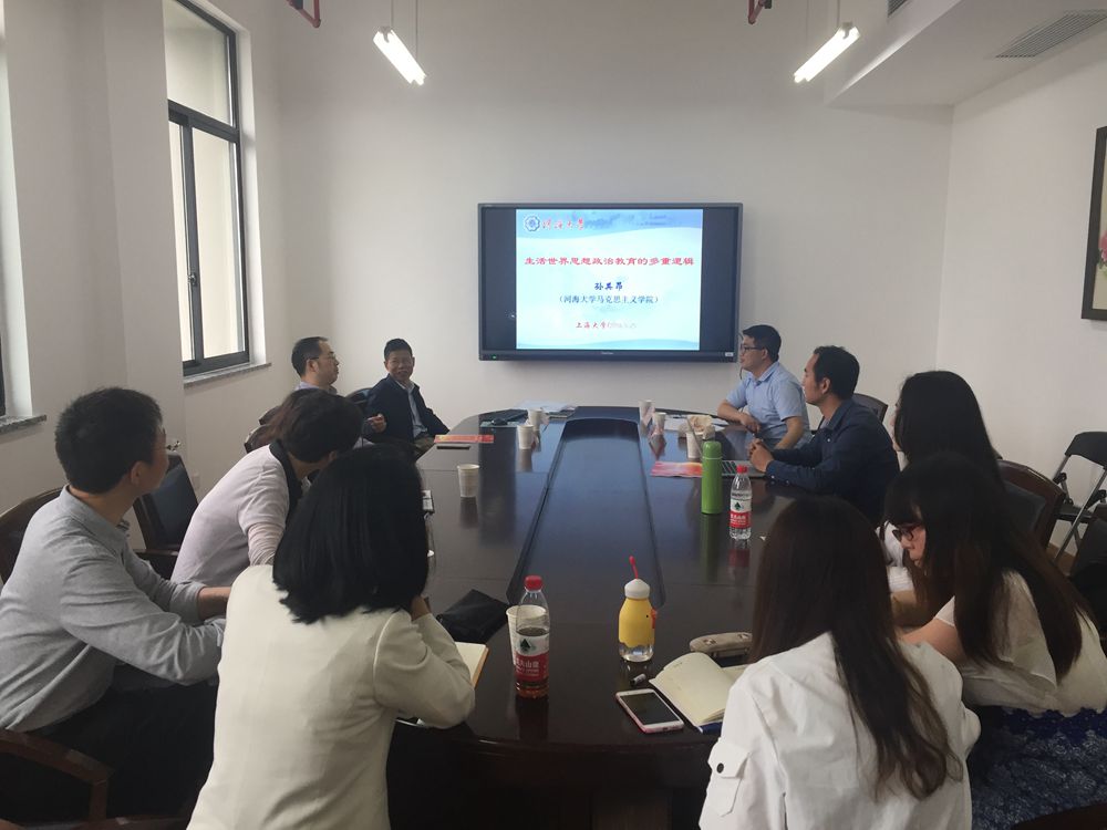2018年5月25日,河海大学买球官方网站孙其昂教授到访买球官网,于社科大楼502会议室举行讲座,讲座主题为"生活世界思想政治教育的多重逻辑",由买球官方网站高立伟教授主持,买球官方网站社会科学学部师生共同聆听讲座。