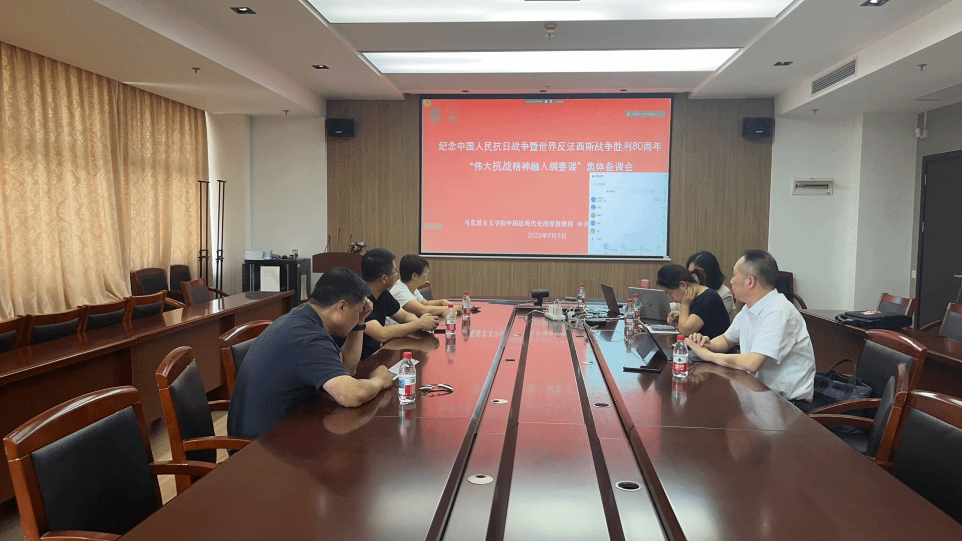 9月3日上午,买球官方网站召开纪念中国人民抗日战争暨世界反法西斯战争胜利80周年“伟大抗战精神融入纲要课”集体备课会。买球官方网站党史党建研究院及中国近现代史纲要教研部全体教师以线下线上相结合的方式参加会议。学院党政班子全体成员参与研讨交流。
