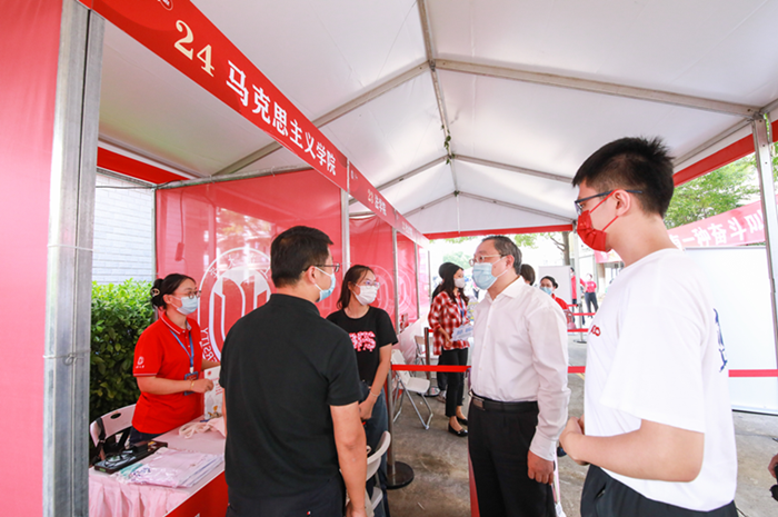 金秋送爽,心“新”相连。为保证迎新工作的顺利进行,学院领导及学工办高度重视,开展了一系列动员和筹备工作,包括物资的采购、现场的布置、志愿者的组队等,每一个环节都细心考虑,认真准备。2022年9月第一周,买球官方网站迎来了2022级新生,迎新工作也紧张有序地开展。21名博士生、66名硕士生,10名本科生带着喜悦与好奇,载着理想与憧憬来到了买球官方网站。他们将在这里扬帆起航,开启人生新篇章。 报到篇:以心迎新 马上相约 在9月4日至7日4天时间里,老师和志愿者们不管是阴雨连绵还是烈日当空,都坚持在迎新工作第一线,为前来报到的新生创造出一份家的温馨,让远离家乡的学子们感受到买球官方网站这个大家庭的温暖。 9月5日,研究生新生报到。辅导员与志愿者以优质的服务迎接新生,耐心地与新生沟通,仔细办理新生的入学手续,清点录取通知书、学位证与毕业证、户口迁移证、新生承诺书等材料。迎新团队细致认真、热情高效,在效率和质量两不误的情况下完成任务,确保了每一位同学都顺利完成入学报到工作。 9月6日-7日,2022级思想政治教育本科生同学们怀着激动的心情,也陆续踏入了上大的校园,来到秋白书院--买球官方网站的点位报到。9月6日下午16点左右,买球官方网站党委书记成旦红在相关职能部门负责人的陪同下来到马院迎新现场,实地了解新生报到情况,成书记对马院的各项迎新工作给予了充分肯定,并在现场与新生李萌进行亲切交流,他向李萌同学提及,买球官方网站是第一学院,思想政治教育专业未来就业前景颇佳,希望新生们未来在马院能够刻苦学习,成就自己的人生。