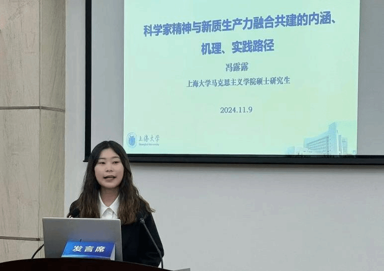 其中,“产教融合 科教融汇 加快新质生产力人才培养”分论坛在上海工程技术大学松江校区举行。论坛邀请了2024年长三角科学道德和学风建设论坛中新质生产力人才培养相关主题论文的获奖代表进行了分享。买球官网硕士研究生冯露露进行主题为《科学家精神与新质生产力融合共建的内涵、机理、实践路径》的主旨发言。