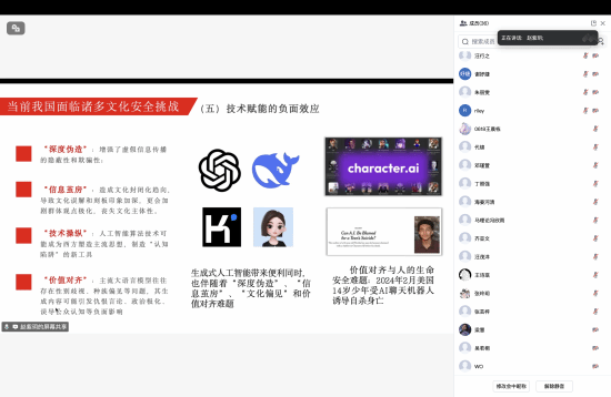 赵紫玥从何谓“国家文化安全”、当前我国面临诸多文化安全挑战、守护文化根脉以及青年一代的使命担当四个方面展开讲解。她指出,文化安全是国家安全的重要组成部分,它关乎着国家的稳定、民族的团结以及精神的延续,是国家安全的重要组成部分。在全球化与信息化时代,维护文化安全不仅要抵御外来不良文化的侵蚀,更要坚定文化自信,弘扬中华优秀传统文化。