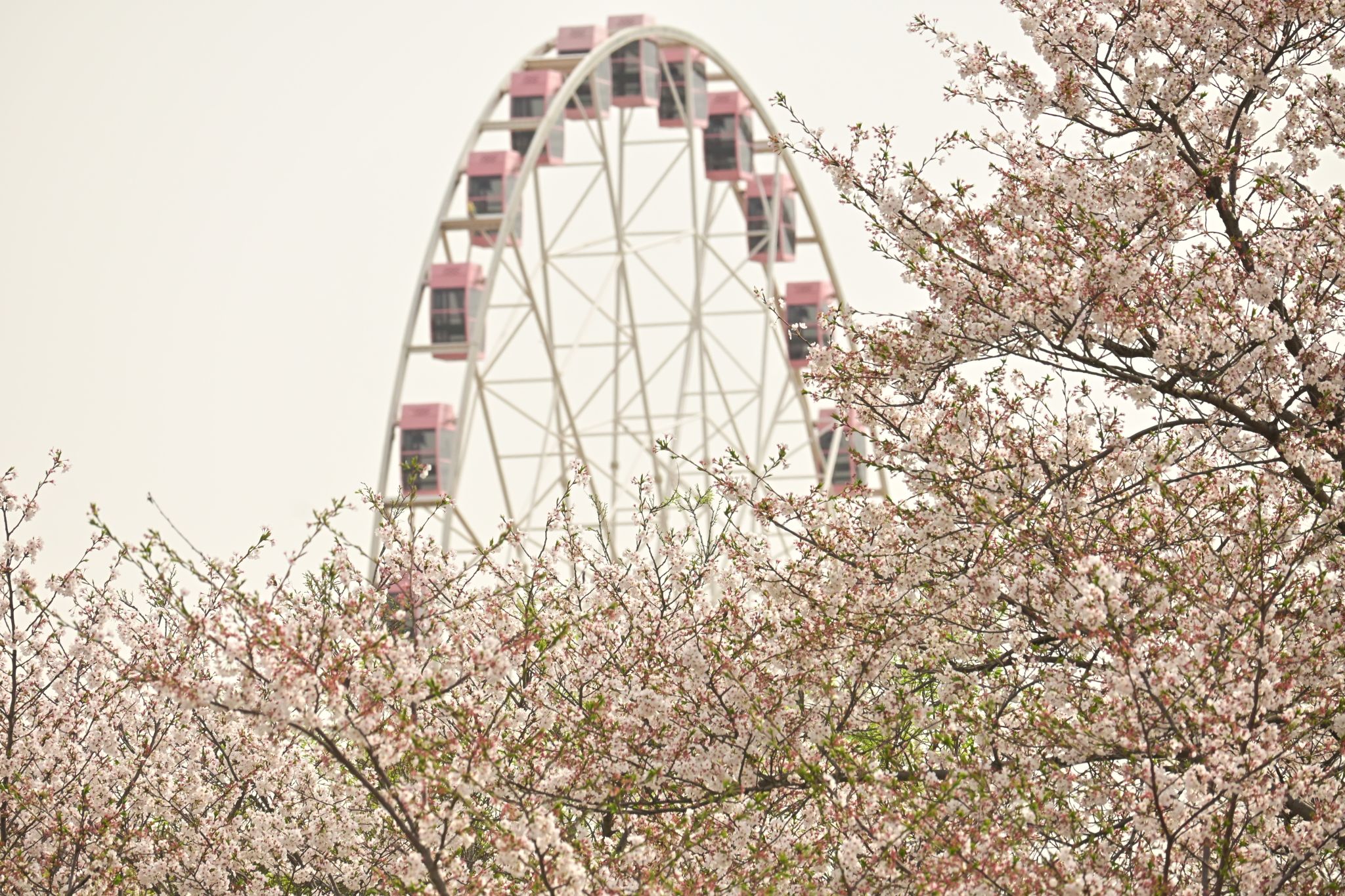 人间四月顾村园, 落英缤纷梦万千。 志愿精神融春风, 青春答卷映华年。