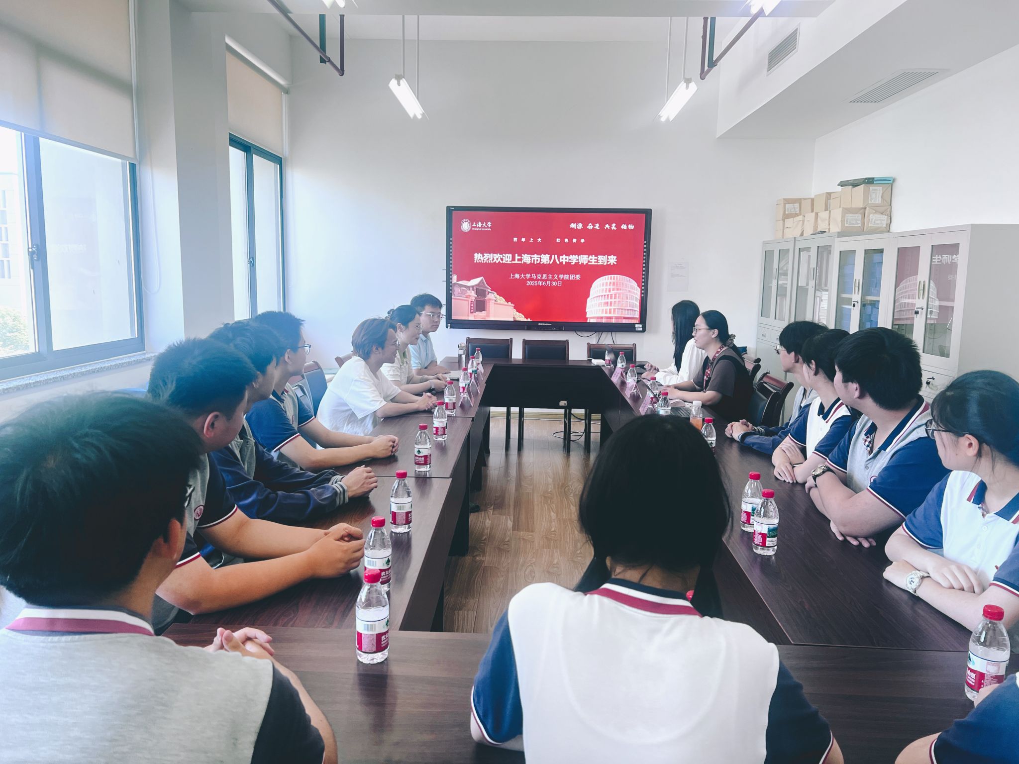 近日,上海市第八中学团委书记龚卉婷携团员青年代表近15人一行来买球官网交流访问。买球官方网站团委书记、本科生辅导员黄丽娜及本科生青年党员韩春雨、张萌、谭思路和张航等同学参与交流。双方积极分享团建工作、社会实践开展等方面经验,共话大中学校共青团工作和未来共建计划。