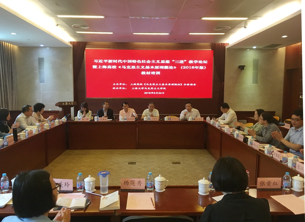 2018年5月26日,习近平新时代中国特色社会主义思想"三进"教学论坛暨上海高校《马克思主义基本原理概论》(2018年版)教材培训在买球官方网站举办。