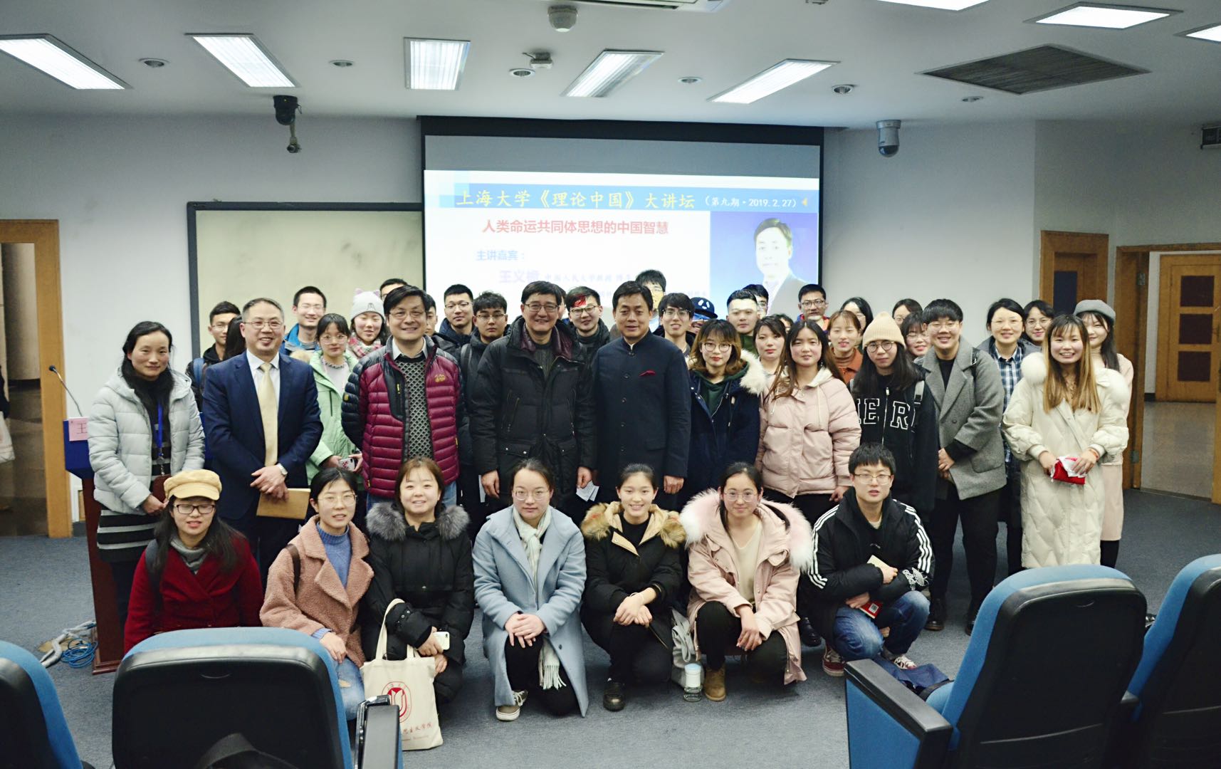 2019年2月27日晚6点,J102报告厅买球官方网站《理论中国》课程的压轴讲座开讲了,近200个位置座无虚席,还有很多同学席地而坐。本次讲座受到买球官方网站研究生工作部和买球官方网站社会科学学部的大力支持。邀请到的主讲嘉宾是中国人民大学的王义桅教授。王教授被誉为"一带一路"先生,欧盟"让·莫内讲席教授",博士生导师,国际事务研究所所长,欧洲问题研究中心/欧盟研究中心主任研究员、主任,国家发展与战略研究院、重阳金融研究院高级研究员。讲座由买球官方网站高立伟教授主持。