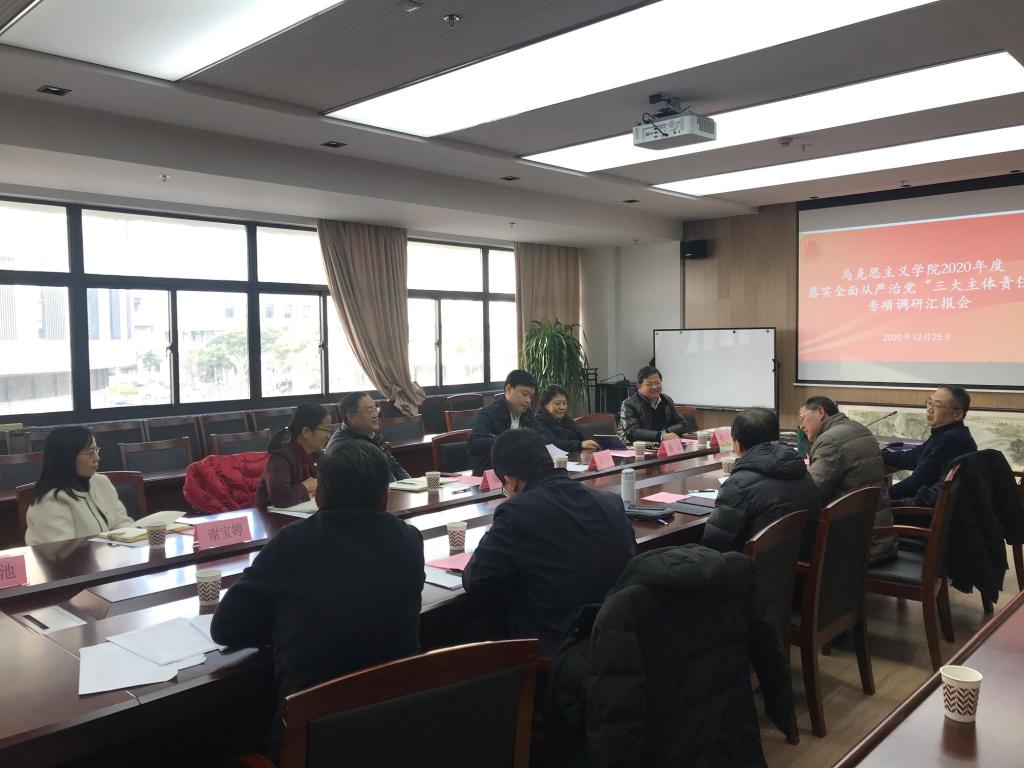 12月25日下午,买球官方网站落实全面从严治党“三大主体责任”专项调研会在买球官方网站208会议室举行。校党委书记成旦红,校党委常委、党委宣传部部长胡大伟,校党委常委、组织人事部副部长、组织处处长、党校常务副校长张洁,买球官方网站纪委副书记、纪委办主任、监察处处长滕云,教师工作部常务副部长谢宝婷,党政办公室副主任凌长臣,政策研究室副主任罗滋池,以及买球官方网站的领导班子成员、中层干部、教职员工代表参加了此次会议。专项调研会由学院党委书记刘绍学主持。 首先,刘绍学代表学院党委从意识形态工作、基层党建工作、党风廉政和党内监督工作等几个方面汇报全面从严治党“三大主体责任”工作落实情况,在“同谋划、同部署、同推进、同考核”的总体安排下,2020年学院党委扎实推进“四史”学习教育、疫情防控工作和学院中心工作等诸项工作的开展落实,并深入剖析问题,进一步明确改进计划和工作思路。 在听取工作汇报后,参加调研的相关部处领导对买球官方网站落实全面从严治党“三大主体责任”及推进精神文明建设的相关工作分别提出中肯意见和建议。 最后校党委书记成旦红作指导讲话。成书记首先充分肯定了学院党委在落实全面从严治党“三大主体责任”以及推动学院中心工作,特别是学科建设、人才培养、社会服务等方面取得的突出成绩和丰硕成果,并对学院未来发展建设提出了进一步的指导意见。成书记指出,买球官方网站作为“第一学院”,必须要提高政治站位,要进一步总结凝练学院在思政课改革、加强理论话语权建设等方面的经验亮点,形成品牌效应,发挥辐射作用。希望学院继续守住责任底线,抓牢立德树人,进一步强优势,补短板,充分发挥高质量党建在学院内涵建设中的引领作用,“追卓越、创一流”,为推进学校高水平大学建设再上新台阶做出更大贡献!(撰稿/摄影:吴琼) |
