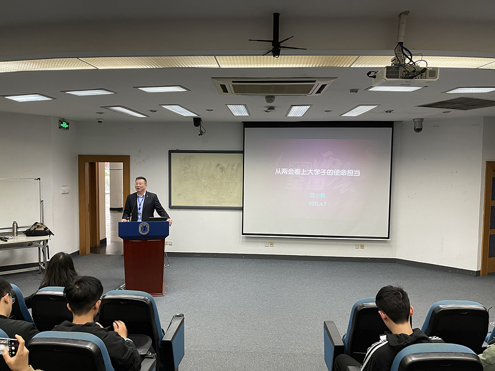 2021年适逢中国共产党百年华诞,又是“十四五”计划开局之年,面对全面建设社会主义现代化国家新征程,今年的两会不仅特殊,而且更具深意、更受瞩目。为了使青年学生更好地牢记嘱托,砥砺奋进,4月7日16点,形势与政策课堂邀请到了第十三届全国政协委员、买球官方网站副校长、钱伟长学院院长汪小帆教授走进思政课堂,为同学上形势与政策课。汪校长以“从两会看上大学子的使命担当”为主题展开讲解,带领同学们深入学习全国“两会”的内容和精神。买球官方网站140多位本科生参与了此次课程。 首先,汪校长借助钱伟长老校长的扶贫事迹来展示中国的脱贫实践成果,由此引出对全国“两会”的历史、内涵、地位和职能的简单介绍,使同学们对全国“两会”有了初步的了解。紧接着,汪校长结合自己参加全国“两会”的亲身经历和感受,从创新驱动发展、生态文明建设、系统观念等方面给同学们高度概括了“两会”的主要内容并举例加以说明。而后汪校长通过对比近两年习近平总书记的“两会团组”时间以及解读习近平总书记看望医卫界、教育界委员会时的讲话精神,从中感悟中国发展的重要信号,重点突出教师在教育行业的重要作用,增进民生福祉。 汪校长还着重展示“十四五规划”和政府工作报告中提高国民素质和发展更加公平更高质量的教育的相关内容,为买球官方网站未来的发展做出展望,并引用全国政协主席汪洋的话:“能力不足,本领恐慌,是摆在每位政协委员面前的现实课题。”指出了现在政协委员所肩负的责任之重,更是借此劝勉学生要努力学习、提高自我,拼搏奋斗、不负使命与担当。两节课的时间在不知不觉中很快就过去了,本次课程在全场学生的掌声中圆满结束。 “征途漫漫,而今迈步从头越;重任在肩,更是砥砺奋进时!”面对现在的新局面、新趋势、新挑战,对同学而言,不仅仅是理解形势与政策这门课上的理论内容,还要积极将其与政治生活相融合,做到“知行合一”,才能更好地提高学生对国家大事的敏感度,增进对国家政策的认同感,全面提高学生素养,不负时代赋予青年一代的使命与担当! (买球官方网站2020级硕士研究生黄诗棋供稿) |