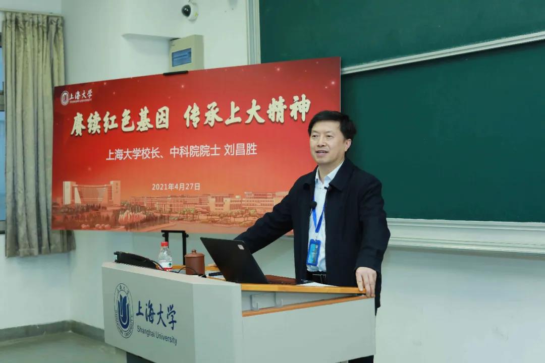 2021年4月27日晚,刘昌胜校长走进“中国近现代史纲要”课堂,为钱伟长学院近100名本科生上了一堂主题为“赓续红色基因,传承上大精神”的思政课,学校青马工程班、人才学院30余名学员也共同聆听了此次课程。 课程从今年是中国共产党建党100周年,着力践行“学史明理,学史增信,学史崇德,学史力行”的党史学习教育要求引入,号召同学们要加强党史学习,在学习中传承、在传承中发展,以自己的实际行动以史为鉴、学史力行,奋进新时代、勇担新使命。