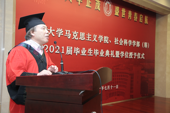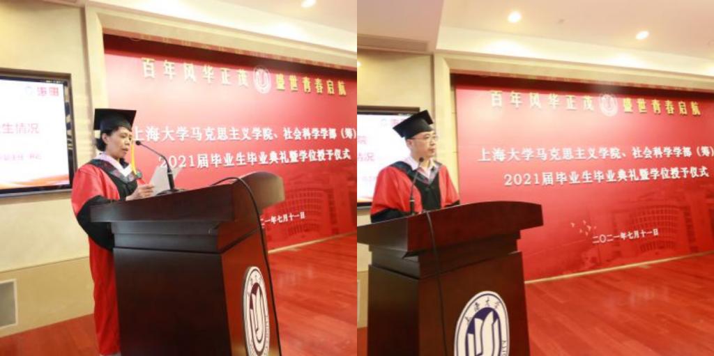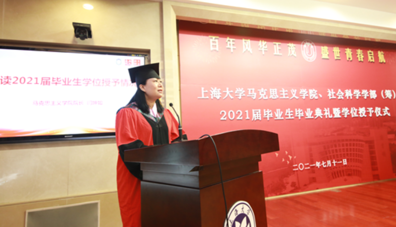 骊歌坦坦,不忘青春年华;山水万程,不负青云之志。2021年7月11日上午10时,买球官方网站、社会科学学部(筹)2021届毕业生毕业典礼暨学位授予仪式在买球官方网站乐乎楼学海厅隆重举行。买球官方网站党委书记成旦红,买球官方网站党委书记刘绍学、院长闫坤如等学院领导班子成员,社会科学学部哲学系领导班子成员,陈新汉教授、王天恩教授、欧阳光明教授、宁莉娜教授等近30位导师代表以及2021届本科、硕士、博士毕业生,在校生代表、毕业生亲友参加典礼,典礼由买球官方网站2019级硕士研究生焦娇担任主持人。 在庄严的歌声中,毕业典礼拉开序幕。买球官方网站党委副书记张高峰主持嘉宾入场仪式,邀请成旦红书记以及各位领导、导师入场。张高峰逐一介绍到场领导及嘉宾,对成旦红书记以及各位领导、嘉宾的到来表示了热烈的欢迎和衷心的感谢,并且宣布毕业典礼正式开始,全场响起热烈掌声,大家齐唱国歌,共同开启这庄严神圣的时刻。 骊歌奏响,难忘来时岁月 在热烈的氛围中,大家观看了短片《钱伟长校长毕业赠言》。短片中,钱伟长校长以恳切真挚的语言表达了对毕业学子的殷切期盼,希望同学们成长为一个全面发展的人,以“自强不息,先天下之忧而忧,后天下之乐而乐”的校训鼓励大家要成为一个对祖国、对社会有所贡献之人,大家备受鼓舞。