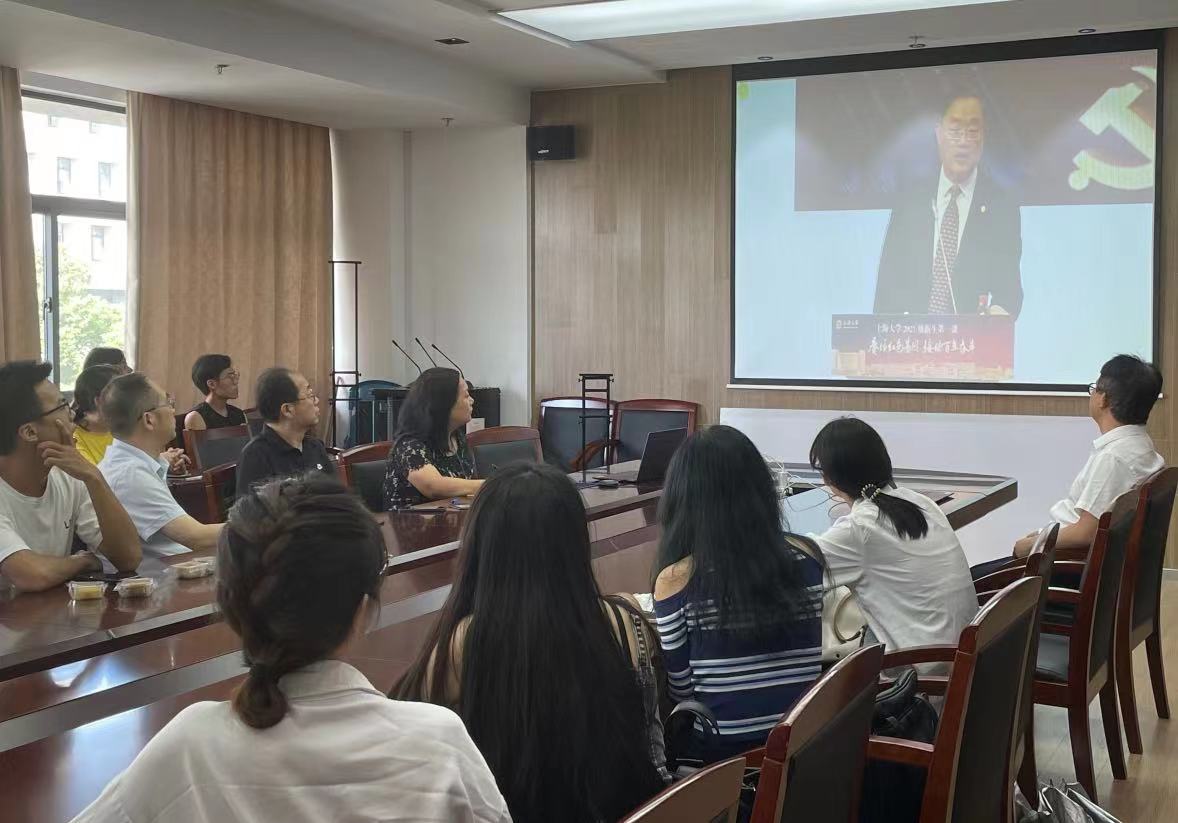 2021年9月17日下午,校党委书记成旦红为2021级新生讲授了题为“ 赓续红色基因,接续百年奋斗”的“新生第一课”,激励广大同学以百倍的精气神投入新的学习生活。全程线上线下同步直播,买球官方网站全体新生以及院领导班子、教师代表等在学院208会议室收看了直播。