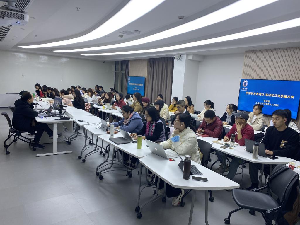 焦成焕教授结合党的十九届六中全会精神,向大家深刻阐释了从高速增长阶段到高质量发展阶段的转变是中国经济从低级到高级,从量变到质变,长期积累、持续发展、内生严谨,在新时代取得历史性成就、发生历史性变革基础上厚积薄发、大势所趋,具有里程碑意义。 焦教授首先简要阐述了高质量发展是新常态经济发展的主题。从历史看,高质量发展是我们党在推动经济建设不断向高级形态迈进过程中形成的,走向高质量发展是一个历史过程。从实践看,高质量发展是全面建设社会主义现代化国家的需要。他认为,国家强,经济体系必须强。全面建设社会主义现代化强国,关键是要实现从经济大国向经济强国转变。 在高质量发展的科学内涵方面。焦教授指出,高质量发展的内涵非常丰富,从不同的角度有不同的回答,在不同的领域具有不同特点,对不同的主体有着不同的要求。他从使用价值形态、微观领域、制造业和发达地区等方面进行分析,认为正确认识和有效推动高质量发展,既要准确把握其在不同领域、对不同主体的特点和要求,更要透过纷繁复杂的现象,从多样性的统一中,把握高质量发展的本质。 在以新发展理念引领经济高质量发展方面。焦教授指出,高质量发展是以人民为中心的发展,也是体现新发展理念的发展,二者是有机统一的。以人民为中心的发展思想,不是抽象的、玄奥的概念,不能只停留在口头上,止步于思想环节,而要体现在经济社会发展各个环节,转换为广大人民群众的生动实践。他围绕习近平新时代中国特色社会主义经济思想的主要内容是新发展理念,即“创新、协调、绿色、开放、共享”新发展理念,从创新成为第一动力、协调成为内生特点、绿色作为普遍形态、开放成为必由之路和共享成为根本目的五个方面,充分阐释了新发展理念的提出才能对中国经济社会发展起到引领作用。 在高质量发展的动力和保障方面。焦教授指出,如何更好地为高质量发展提供充足的动力和坚强的保障,一是要加快构建新发展格局,以习近平同志为核心的党中央提出加快构建以国内大循环为主体、国内国际双循环相互促进的新发展格局,这是推动高质量发展的重大战略。二是要以深化供给侧结构性改革为主线,我国经济运行面临的主要矛盾在供给侧,实现高质量发展关键在于提升供给体系的水平和质量,更好适应、引领和创造新需求。三是要始终坚持改革开放,进入新发展阶段,推动实现高质量发展,面临的改革任务更为复杂艰巨,我们必须解放思想,以开拓精神和专业态度,推动改革开放在重点领域、关键环节取得重大突破。四是要始终坚持“两个毫不动摇”,实现高质量发展,必须落实好《决议》要求,毫不动摇巩固和发展公有制经济,毫不动摇鼓励、支持、引导非公有制经济发展。