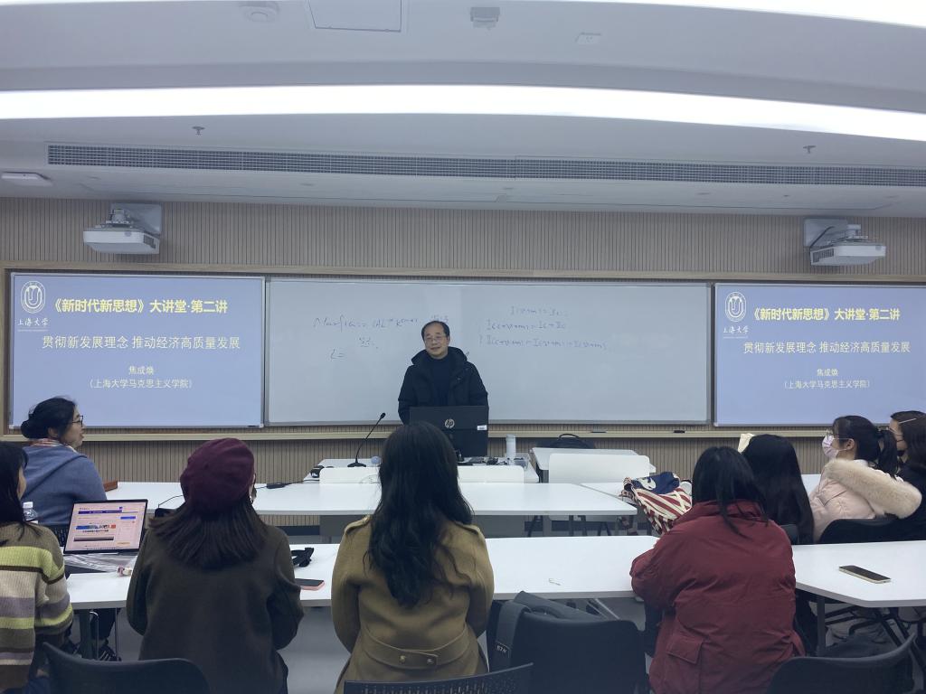 “《决议》指出:“党中央强调,贯彻新发展理念是关系我国发展全局的一场深刻变革,不能简单以生产总值增长率论英雄,必须创新成为第一动力、协调成为内生特点、绿色成为普遍形态、开放成为必由之路、共享成为根本目的地高质量发展,推动经济发展质量变革、效率变革、动力变革。” ——买球官方网站焦成焕教授做客《新时代新思想》大讲堂 12月7日晚,买球官方网站面向硕博研究生和青年教师开设的“习近平新时代中国特色社会主义思想”专题课——《新时代新思想》大讲堂·第二讲正式开讲。该课程第二讲特别邀请到了买球官方网站教授、博士生导师、买球官方网站副院长焦成焕教授作为主讲嘉宾,为大家带来《贯彻新发展理念推动经济高质量发展》的主题讲座。本讲由买球官方网站杨章文博士主持,采用了“线上+线下同频共振”的新模式,买球官方网站全体硕博研究生以及其他高校师生学者共100余人共同参与。