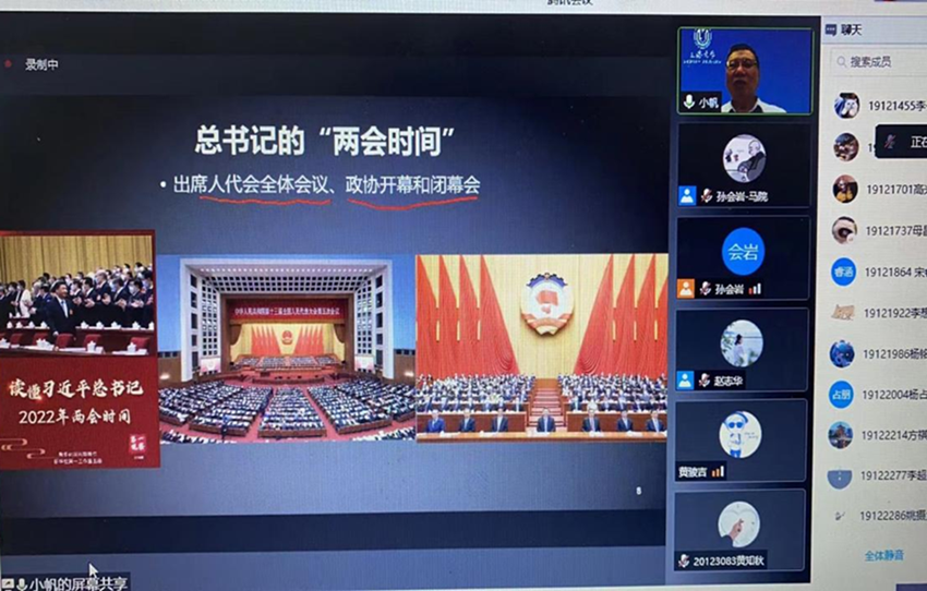 3月15、16、21日晚,刚刚从北京参加完两会的汪小帆副校长受邀做客“形势与政策”、“毛泽东思想和中国特色社会主义理论体系概论”线上课堂,分别以“奋进新征程,建功新时代”和“从‘两会’看青年学子的使命担当”为主题对2022年全国“两会”精神进行解读,近2000名学生和部分教师参加了此次学习与交流。