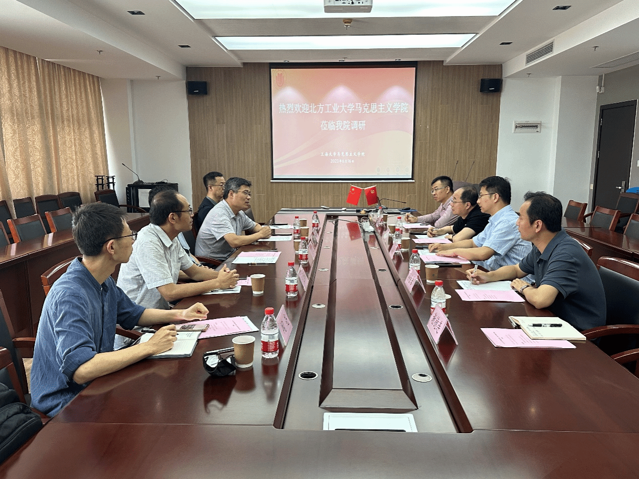 王国建书记代表学院对张茂林书记和袁本文院长一行的到来表示热烈欢迎,并围绕办学特色、师资队伍、教学改革、科研成果、学科建设、社会影响等方面介绍了学院的基本建设情况。张茂林书记对学院的热情接待表示感谢,同时也介绍了北方工业大学马院的基本建设情况。之后,焦成焕副院长重点介绍了买球官方网站思政课改革和中国系列课程建设情况。袁本文院长对北方工业大学的思政课实践课程的经验进行了分享。 随后,双方围绕思政课教学改革、思政课教师队伍建设举措、示范买球官方网站建设、马克思主义理论专业研究生培养方案、党建与社会服务工作情况等议题进行了深入交流与探讨。双方表示,将以此次交流为契机,进一步加强交流互动,相互学习借鉴,共同促进马克思主义理论学科的发展。
