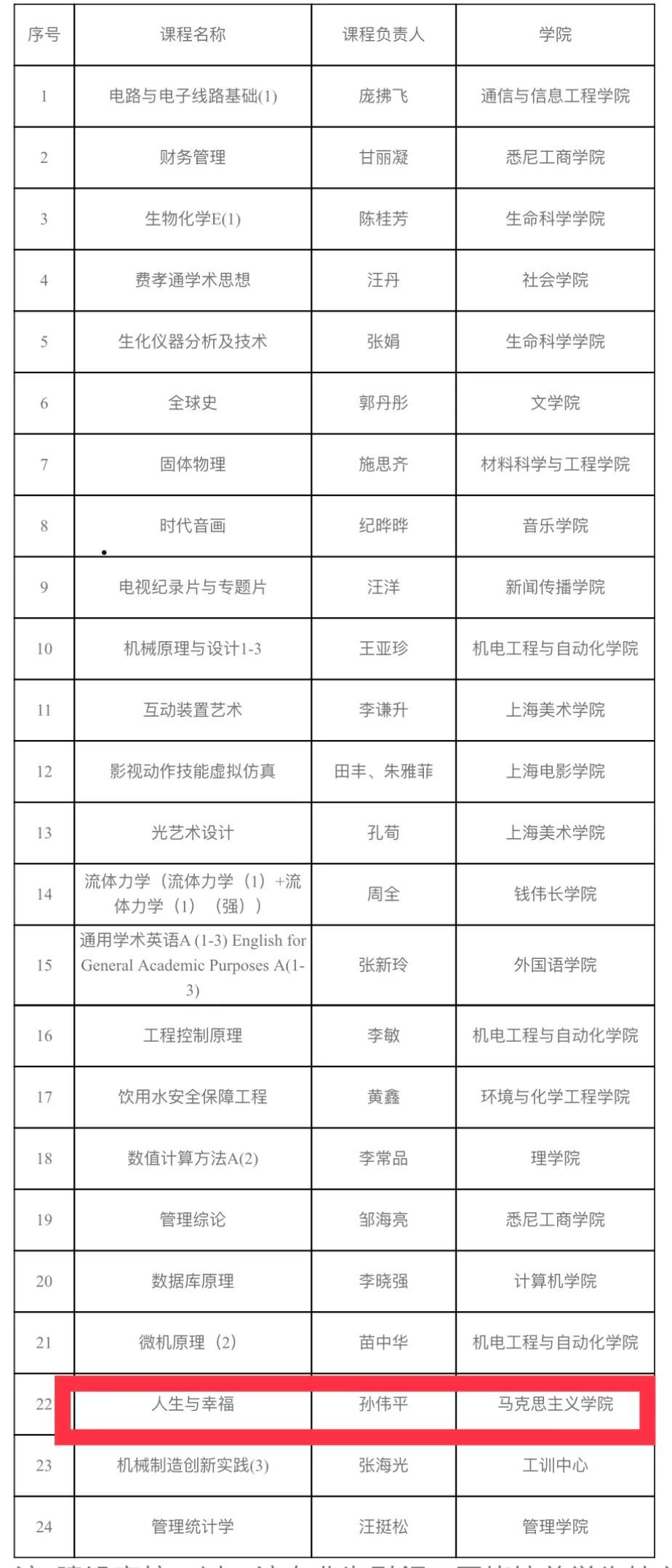 近日,上海市教育委员会发布《上海市教育委员会关于公布2023年度上海高等学校一流本科课程认定结果的通知》(沪教委高〔2024〕2号),由孙伟平教授负责的《人生与幸福》课程(教学团队:孙伟平、陈新汉、尹岩、杨丽)被认定为2023年度上海高等学校一流本科课程。