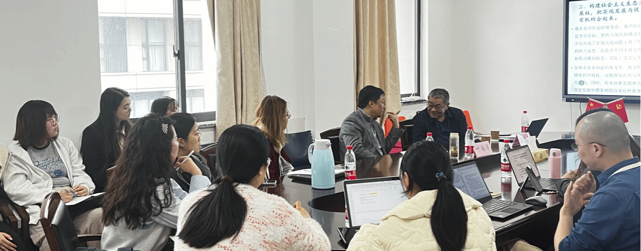 习近平生态文明思想从实现价值立场的转换和辩证地解决技术进步、经济增长与生态文明建设之间的关系这两个层面,实现了对生态文明理论内在矛盾的科学解决。一方面,习近平生态文明思想摒弃了西方现代化服务于资本追求利润的发展目的,坚持以人民为中心发展思想和“环境正义”的价值取向,合理协调不同国家、不同地区和不同人群的生态利益矛盾,实现在价值立场上的特殊维度和普遍维度的有机统一。另一方面,习近平生态文明思想强调生态环境保护和经济发展之间的辩证统一关系,通过技术进步和经济增长满足人民群众生存的基本需要和对美好生活的需要,把生态文明理论的理想维度理解为实现发展与追求生态和谐的有机统一。 在构建社会主义生态文明理论应有的方法论与价值追求上,王教授指出,首先必须以马克思主义关于人与自然关系的思想为基础揭示生态危机的根源和本质。其次,构建社会主义生态文明理论必须捍卫中国的环境权与发展权,实现发展与促进经济社会绿色转型和保护生态平衡的有机结合。最后,必须坚持历史唯物主义“环境正义”的价值取向,使促进中国绿色低碳发展和促进全球生态环境治理的发展维度,与促进美丽中国和美丽世界建设理想维度的工具理性与价值理性相结合。 王雨辰教授还结合时政热点分析了“新质生产力”等前沿问题,为在场师生分享了许多学术观点。在评论和问答环节,师生们纷纷与王雨辰教授展开互动,王教授一一给予了细心解答。(供稿:2022级博士 张静) |