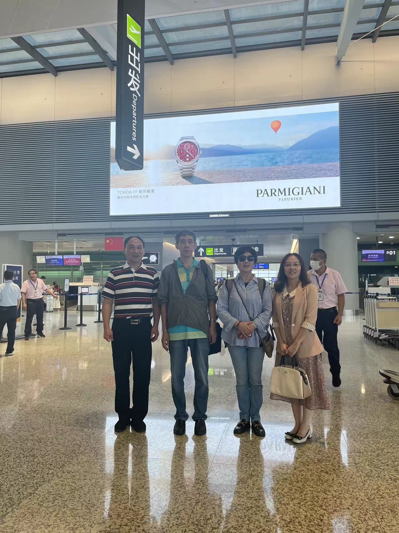 临行前,学校、买球官方网站、退休教师党支部等都给予了刘老师深切关怀和支持,学院党委召开了欢送会,学校离退休党委书记、处长余志龙,副处长王宇华,亲自到虹桥机场为她送行。