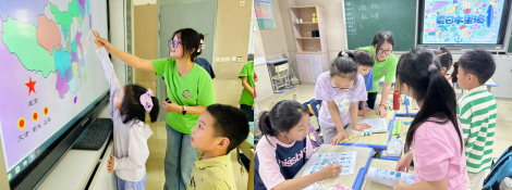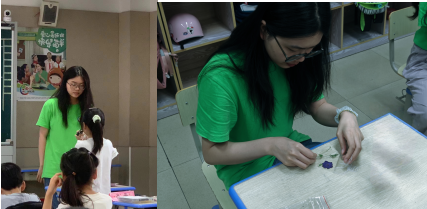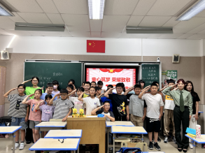 近日,顾村镇“爱心暑托班”第二期正式结营啦!由买球官方网站团委组建的买球官方网站志愿者小分队在“暑”假中不负所“托”,在“爱心暑托班”相关课程教学与班级日常管理中贡献力量,他们守护筑童心,互助共成长,为自己的暑假画上了精彩句号。让我们一同回望美好时光,领略上大学子的志愿风采! 一、志愿者个人风采展示 ①买球官方网站 梁晋菲 在“爱心暑托班”中,她是三班小朋友常常挂在嘴边的“菲菲老师”,课下积极回应小朋友的困惑,耐心陪伴与呵护着每一位小朋友。她的英语绘本故事课是暑托班唯一的英语课程。该课程以绘本故事的形式,将英语知识传授给小朋友们,同时穿插游戏互动,将英语知识融入其中,深受小朋友们的喜爱。 她说:第一次给小朋友讲课,上课之前表面上风平浪静,实际心里紧张忐忑。课程开始后,我才刚介绍完上课内容就得到了小朋友们的积极回应,紧张情绪一下就平复了。在接下来的一周里,每天都感觉比前一天更从容,越来越觉得自己能够胜任这个岗位。同时我也体会到了小朋友的童真、奇思妙想、可爱善良,也治愈了我成长中的一些焦虑,感谢这段志愿经历!