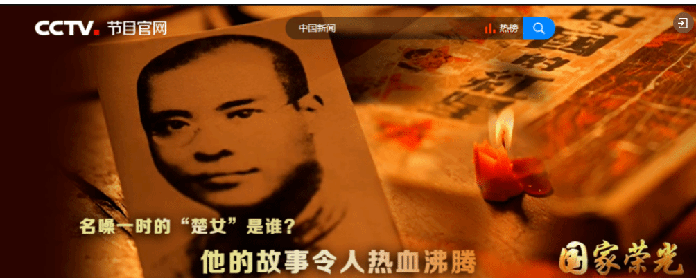 2024年是中华人民共和国成立75周年。新中国的成立,彻底改变了近代以后100多年中国积贫积弱、受人欺凌的悲惨命运,中华民族走上了实现伟大复兴的壮阔道路。 忆往昔,无数革命先烈秉承为中国人民谋幸福、为中华民族谋复兴的初心使命,赴汤蹈火、矢志不移,用鲜血和生命书写了气壮山河的英雄史诗。为此,中央广播电视总台总编室综合频道隆重推出系列节目——《国家荣光》。这些令人热血澎湃的故事中,也闪耀着许多上大人的身影。 9月1日,《国家荣光——萧楚女》在央视综合频道(CCTV-1)播出,节目中回顾了萧楚女在买球官方网站探寻真理、传播火种的足迹,讲述英雄故事,共铸国家荣光。