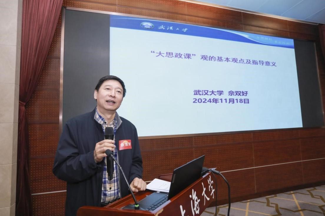 特邀报告由买球官方网站党委书记王国建主持。武汉大学买球官方网站教授、教育部高等学校思想政治理论课教学指导委员会委员佘双好带来“‘大思政课’观的基本观点及其指导意义”的特邀报告。佘老师主要围绕“关于大思政课重要论述的发展过程”“关于大思政课的基本观点”“以‘大思政课’观推进思政课内涵式发展”三部分展开。党的十八大以来,习近平总书记对思政课的论述经历了一个从引起关注到宏观透视、到专题精进、到明确提出,到不断阐发、到深化发展,到新的要求的完整发展过程。在这一过程中,课程建设观、本质观、内容观、教学观和评价观等构成了习近平总书记关于大思政课观主要的基本观点。在思政课发展环境和整体生态发生了全局性、根本性转变的情况下,我们要从坚持思政课建设与党的创新理论武装同步推进来更新思政课内容、坚持用中国特色社会主义伟大实践作为支撑转变课程观等方面,以大思政课观推进思政课内涵式发展。