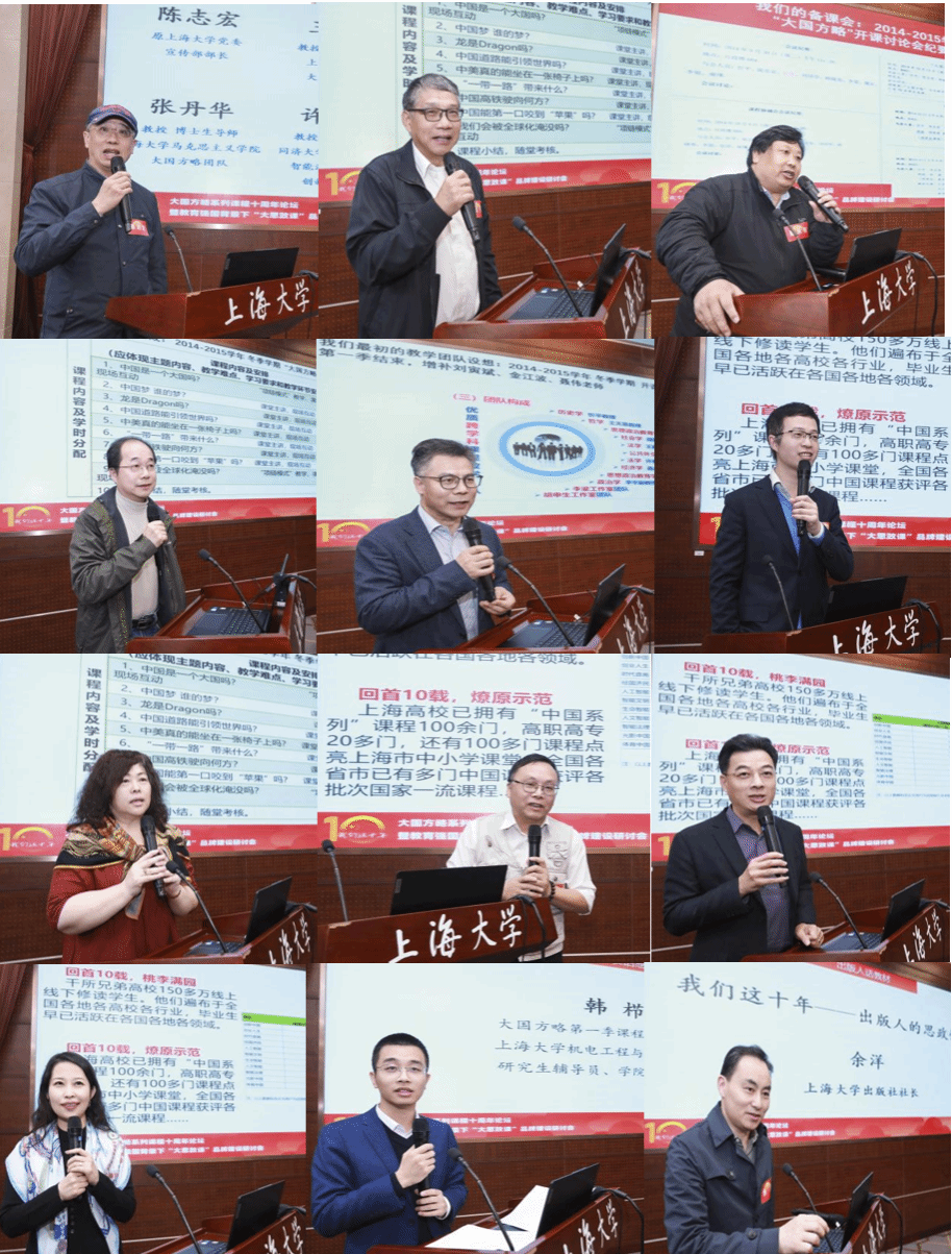 “一群浪漫者的志愿行动”。陈志宏、王蔚、聂永有、焦成焕、许春明、肖俊杰、张丹华、李明等老师一一深情回忆课程开课、备课、上课经历……首届大国方略课程班学生夏蓓发来深圳校友对课程组的祝贺,当年发言的韩栉同学成了学校研究生辅导员,回顾了在课程里得到的成长。买球官方网站出版社社长余洋作了“我们这十年——教材出版”的交流。《新民晚报》记者王蔚与会并发来文字,“祝贺买球官方网站的大国方略团队,十年磨一剑,既培养了学生,也培育了教师队伍,让更多学科教师加入课程思政队伍里来。我作为一名教育条线记者,也是专门跑上大的记者,幸运地也是大国方略课程一路发展的见证者和报道者。