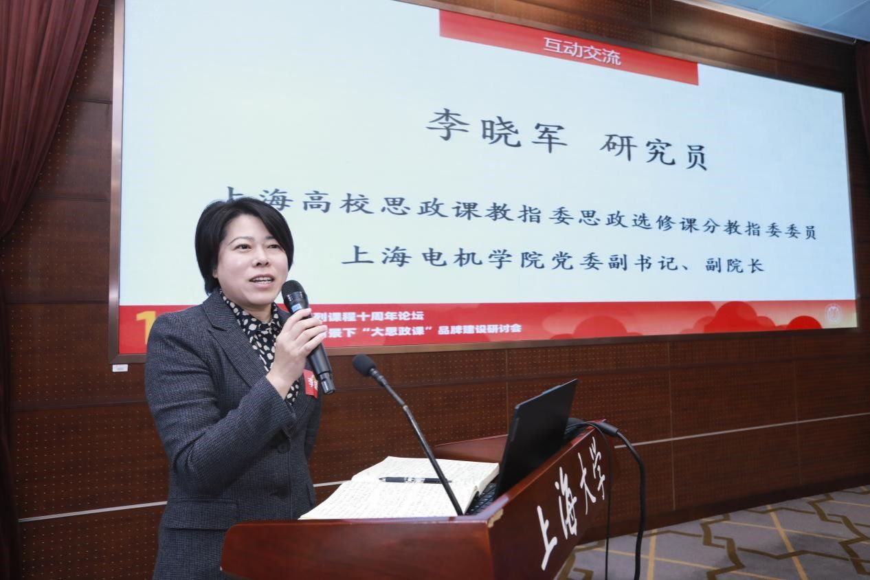 ” 大家一起回顾了“大国方略”课程开发开课至今十周年以来取得的各项成绩,分析了当前遇到的问题和挑战,对进一步做好中国系列课程建设等相关工作进行深入探讨。上海电机学院党委副书记、副院长,市思政课教指委思政课选修课分委会委员李晓军作了精彩点评。