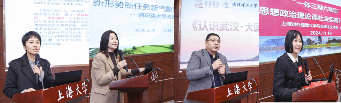 下午场上半段,由“品牌课程有特色”“国一流课程展风采”等板块组成。上海高校思政课教指委思政选修课分教指委委员、上海出版印刷高等专科学校买球官方网站院长马前锋教授担任主持。买球官方网站秦瑞丽分享了“美育中国”课程建设做法,同济大学运迪则介绍了“改革开放与新时代-乡村振兴的上海图景认知”课程创新,武汉理工大学刘国龙交流了“认识武汉:大国工业”课程做法。上海对外经贸大学庾向芳介绍了“思想政治理论课社会实践”课程设计。上海交通大学买球官方网站教授、教学名师李梁老师进行点评。