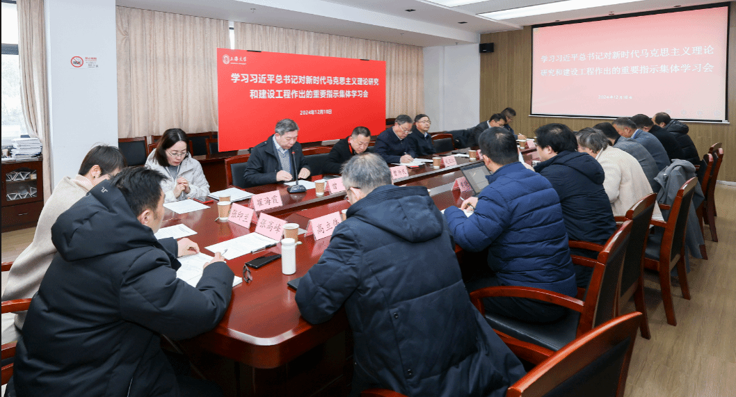 12月18日,学习习近平总书记对新时代马克思主义理论研究和建设工程作出的重要指示集体学习会在我校买球官方网站208会议室举行。校党委书记成旦红出席并讲话。学校相关职能部处负责人,马克思主义研究院融合创新团队首席专家,买球官方网站党政领导班子成员、高层次人才代表以及“双带头人”党支部书记参加会议。学习会由校党委常委、宣传部部长曾军主持。