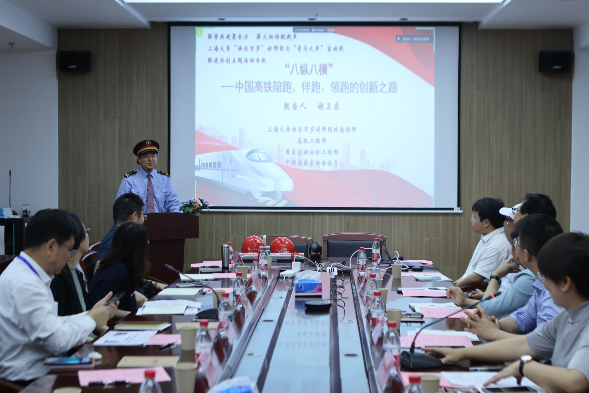 活动中,双方聆听了“快乐百岁”讲师团成员谢卫东工程师(曾任上海铁路分局安全监察委员会主任)带来的《“八纵八横”——中国高铁陪跑、伴跑、领跑的创新之路》以及“青马之声”宣讲团成员张萌、纪欣宇展示的《沪遵同行,山海共情——让遵义会议精神永放光芒!》精彩微宣讲展示。