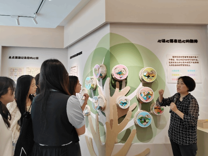 活动在“万里无忧”空间的讲解员何燕老师的专业导览中拉开序幕。 何老师以生动活泼的科普语言揭开了大脑情绪能量的奥秘。借助直观的媒体展示,同学们仿佛置身现实情境,切身感受到了不同情绪的内在张力。她将“自我意识”“精神世界”等抽象理论巧妙转化为生活中常见的场景案例的阐述,引导同学们在聆听中领悟“关照自我感受,减少精神内耗”的智慧。在“情绪、压力与应对”展厅,同学们提出人工智能时代人们的日常焦虑与专业选择的困惑时,她深刻指出科技发展需要人文社科学科发展的强势引领,呼吁同学们要树立文科自信。 随后,同学们移步至“和谐社会心理基础”展区。何老师亲自操作一系列心理装置,让大家感受社会支持的重要性。她引导同学们不必担忧“未来的不确定性”,要积极体会人际联结给予大家的温暖力量。通过这些互动体验,同学们不仅在知识层面有了收获,更在情感和心理层面得到了滋养。 沉浸体验:释放情绪密码 导览结束后,同学们纷纷投入馆内特色体验环节。“情绪疏导系统”成为热们项目,大家积极参与“趣味宣泄”“情绪体验”等沉浸式活动。在轻快的音乐与优美的视觉画面环绕下,同学们身临其境地感受情绪的流动,体验释放压力后的轻松与畅快。 在静谧的心理咨询体验区,同学们闭目凝神,跟随系统引导调整呼吸。眼前屏幕上的枯树随心境变化焕发生机,最终化作一片绿意盎然的森林,直观展现了内在调适带来的积极转变与生命活力。 心灵回响:共筑心愿之树