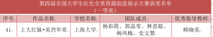 买球官方网站硕士研究生杨彩霞、郭晶莹、林思聪、杨凤梅、史文慧报送的作品《上大红脉•英烈华章》,在第四届全国大学生红色全景资源创意展示大赛中荣获一等奖。