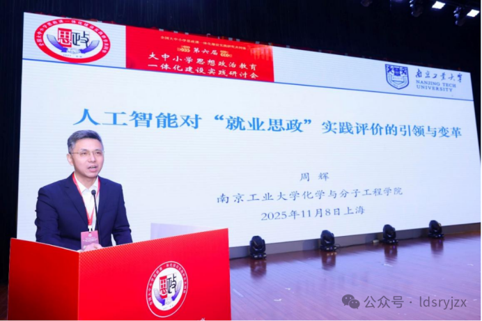 东北大学研究生院(党委研工部)副院长兼部长、教授 丁义浩 南京工业大学化学与分子工程学院党委书记、研究员周辉以《人工智能对“就业思政”实践评价的引领与变革》为题,提出构建“人工智能+就业思政”评价体系。他分析新时代就业思政的核心是将职业规划与思政教育深度融合,通过AI技术采集学生职业价值观、社会责任意识等多维度数据,形成“知识——能力——信仰”一体化评价模型。校企联合开发“就业思政数字平台”,接入全国行业产业代表性企业案例,通过虚拟面试、职业素养AI测评等功能,助力学生将个人发展与国家需求相结合,推动毕业生高质量就业。