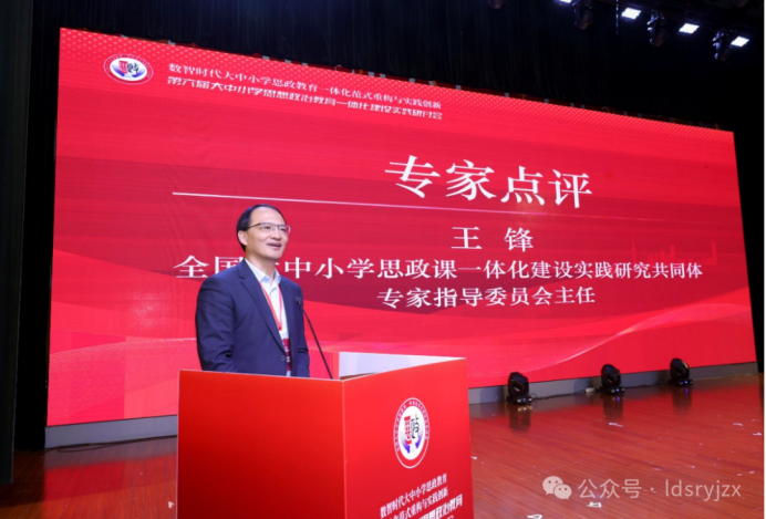 买球官方网站附属中学德育处主任 邢佳 最后,全国大中小学思政课一体化建设实践研究共同体专家指导委员会主任王锋作专家点评。王锋认为15位专家的主旨发言紧扣“数智时代大中小学思政教育一体化范式重构和实践创新”这一核心主题,既呈现了数智技术赋能思政教育的鲜活探索,又深入剖析了未来一体化建设改革创新的一些关键命题,充分彰显了思政教育工作者的时代敏锐性与实践担当。本届研讨会的主旨发言有三个显著特点:一是范式重构主题回应了“大中小学思政课一体化改革创新”的时代命题;二是实践研究体现落地落实特征,破解“数智化如何落地”的现实难题;三是优化资源呈现的整体融通态势坚定了推进一体化建设改革创新的决心。