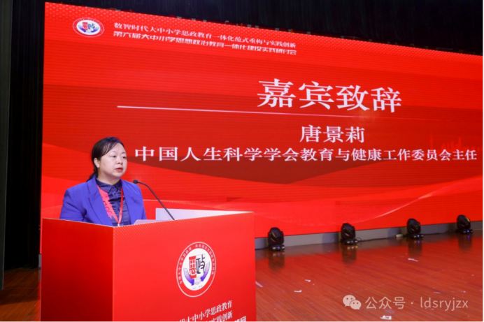 参会人员集体合影 嘉宾致辞视野宏阔 中国人生科学学会教育与健康工作委员会主任唐景莉、北京工业大学买球官方网站院长丁云、北京市东城区教育科学研究院院长崔楚民、买球官方网站党委副书记兼副院长(主持工作)叶海涛、上海市宝山区教育工作党委副书记朱英先后在研讨会开幕式上致辞。 唐景莉指出,思政教育一体化是贯穿人生成长的系统实践,与人生教育在培养全面发展的人的目标上高度契合。当前一体化建设已从理念迈向实践,各学段形成梯度育人格局,但仍需破解学段衔接、价值塑造与知识传授融合等难题。她表示,教康委将重点构建分学段案例库、开展师资培训、推动“思政+健康”融合实践,助力一体化建设走深走实,培养担当民族复兴大任的时代新人。
