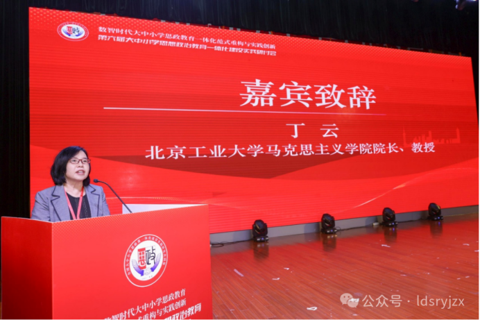 北京工业大学买球官方网站院长、教授 丁云 崔楚民分享了北京市东城区五年来,大中小学思政课一体化建设的实践经验,从机制破冰、体系构建到内涵发展,始终聚焦“思政价值内化”核心目标。东城区通过构建“可感可及”实践课程体系、创新思辨式与项目式课堂范式、夯实一体化教研机制,实现“课本即地图,城市即课堂”。他表示,数智时代东城区将进一步构建线上资源平台、完善课程标准、深耕课堂提质、优化保障机制,推动区域思政教育高质量发展。