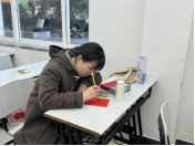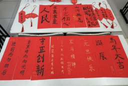 三、翰墨抒怀:在文化创作中凝聚奋进之力 墨香四溢迎新春,红红火火过大年。一场充满文化韵味的“红色迎春对联创作”将活动推向高潮。党员同志们铺纸研墨,以笔言志、以联抒怀,将党性修养、家国情怀、奋斗精神融入笔端,融入辞旧迎新的美好祝福中。现场佳作频出,既有“轻装策马青云路,人生从此驭长风”的豪迈抒怀,也有“进前而勿顾后,背黑暗而向光明”的坚定信念表达。一副副对联笔墨传情、意蕴深远,将红色文化与新春气息巧妙融合,彰显了新时代马院青年党员的文化自信与使命担当。