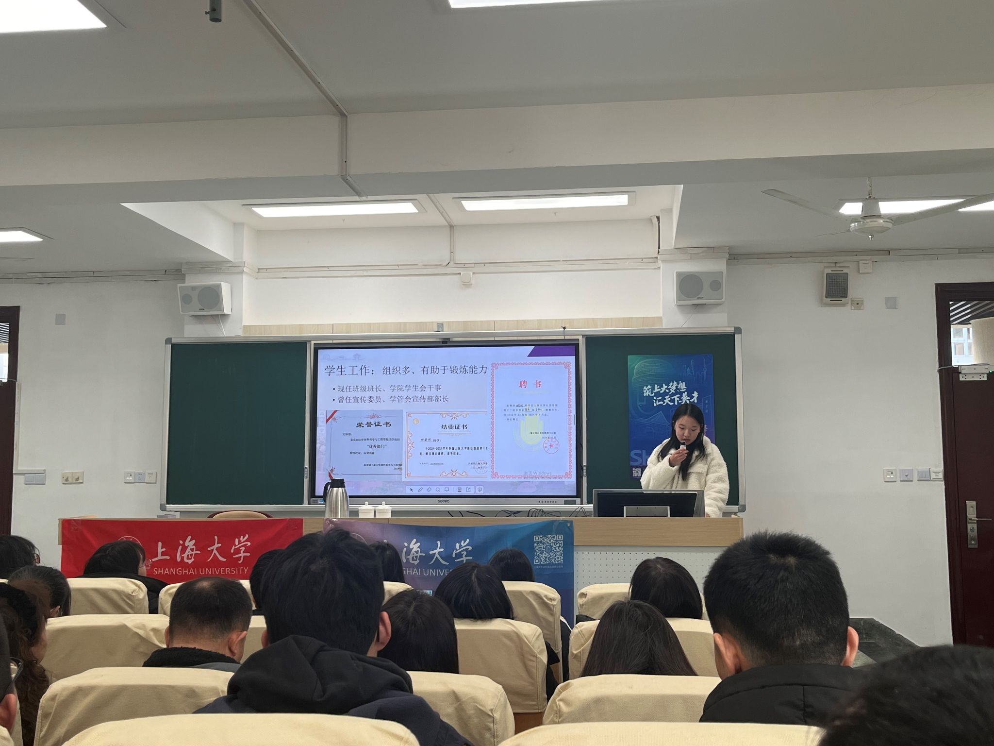 作为“我为上大代言”活动控江中学组成员,我校材料学院高分子材料与工程专业田蔚然同学分享了自身在买球官方网站学习生活和成长的亲身感受,欢迎更多的学弟学妹报考买球官方网站,收获进步和成长。 宣讲结束后,师生家长与招宣组热烈互动,招宣组一行耐心解疑答惑。
