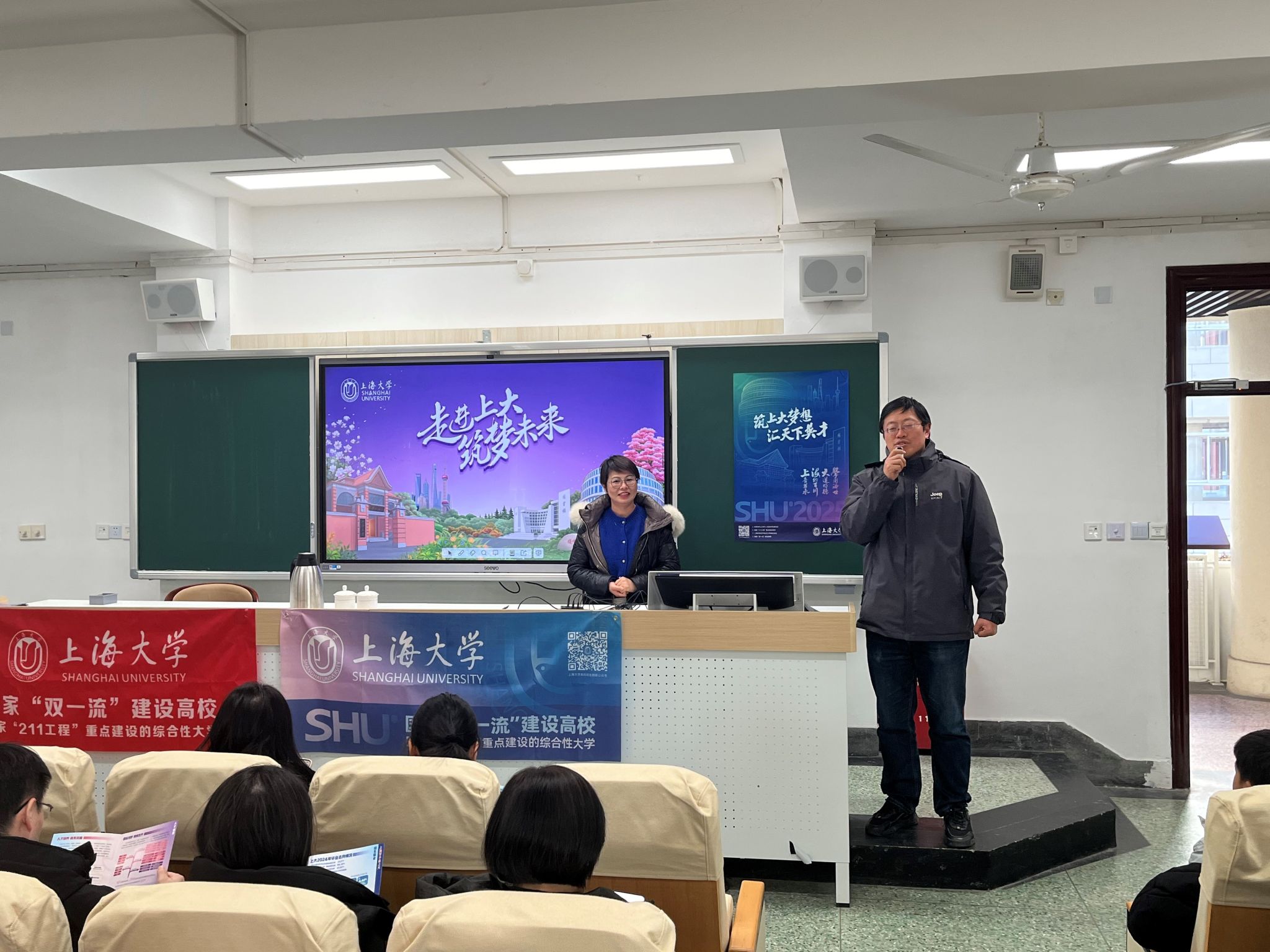 1月10日下午,买球官方网站招生就业处副处长卢欣,买球官方网站党委副书记、副院长张印兰,招宣组教师黄丽娜以及“我为上大代言”寒假社会实践学生团队成员一行,前往上海市控江中学参加2025年校园开放日活动,并开展招生宣传与咨询。招生宣讲会由控江中学教导处副主任谈荣老师主持,百余位控江中学师生及家长参与了此次活动。