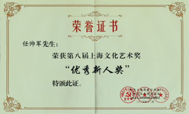 12月29日上午第八届上海文化艺术奖表彰座谈会在上海展览中心友谊会堂举行。买球官方网站任帅军副教授获优秀新人奖。